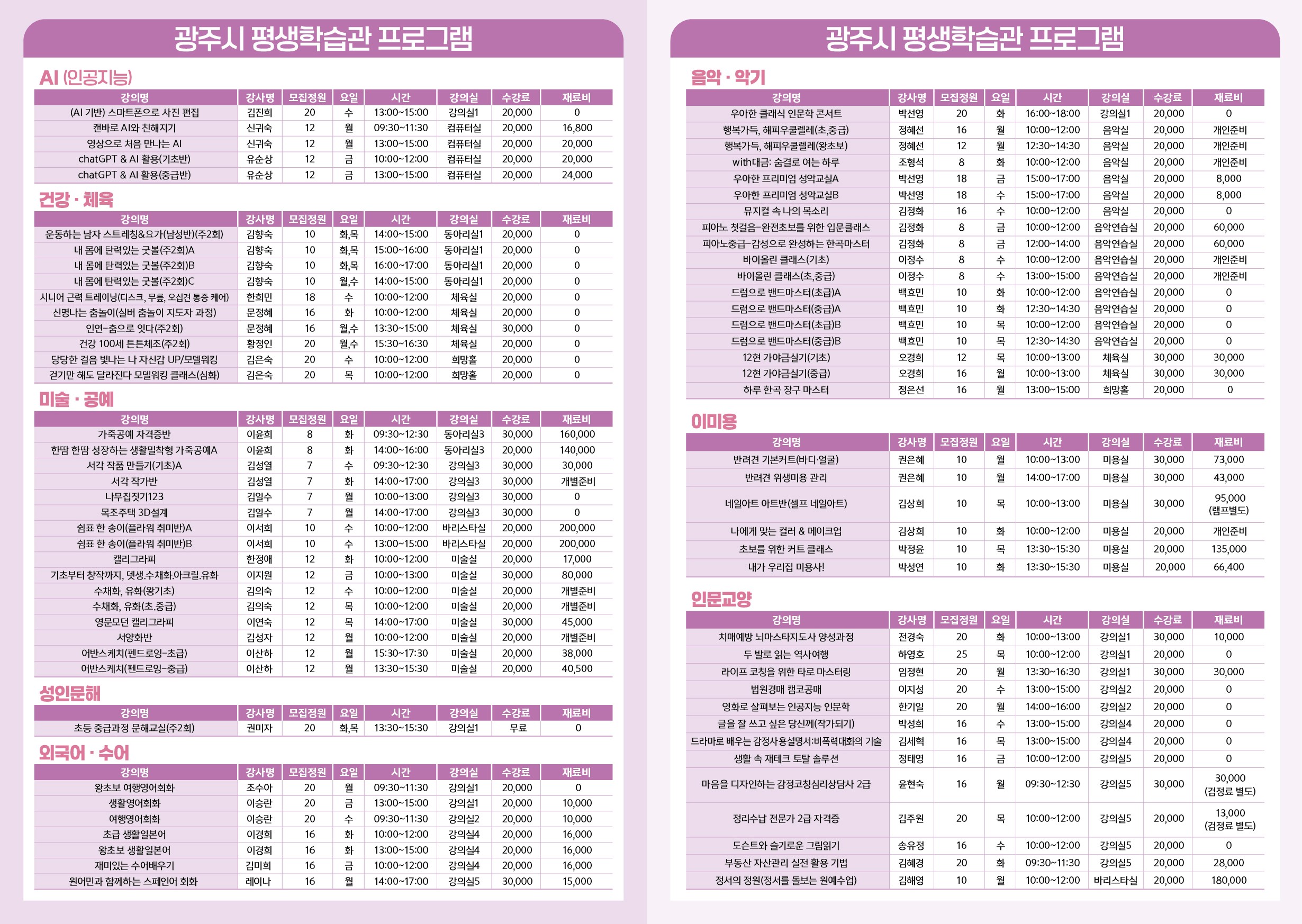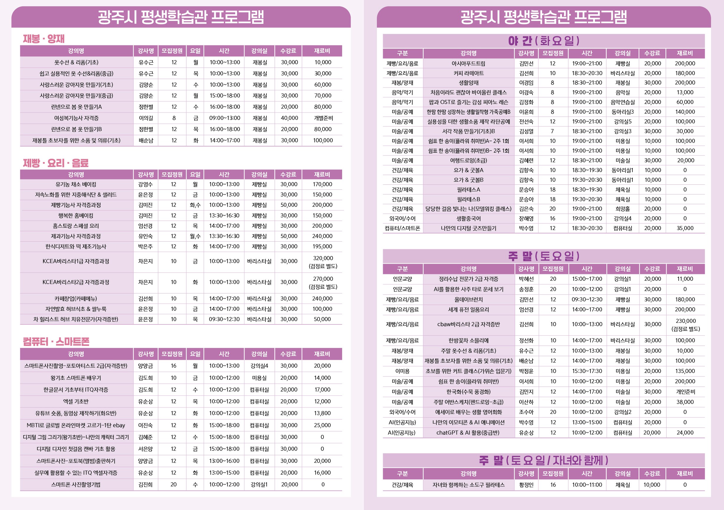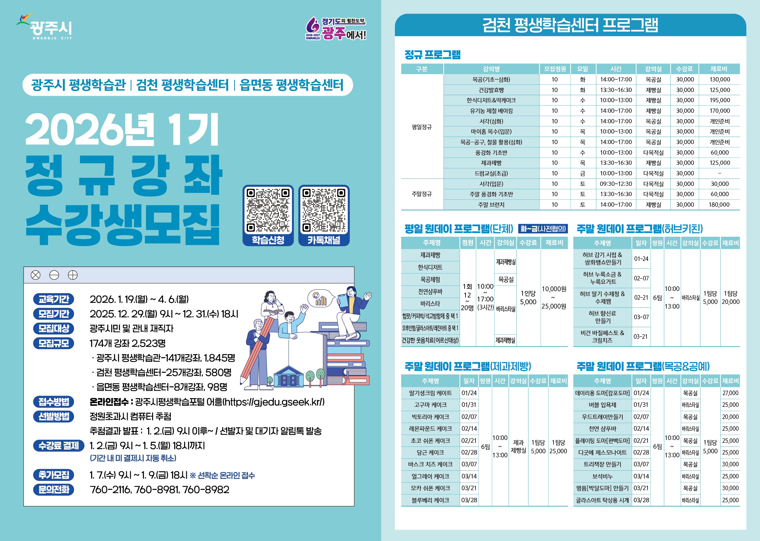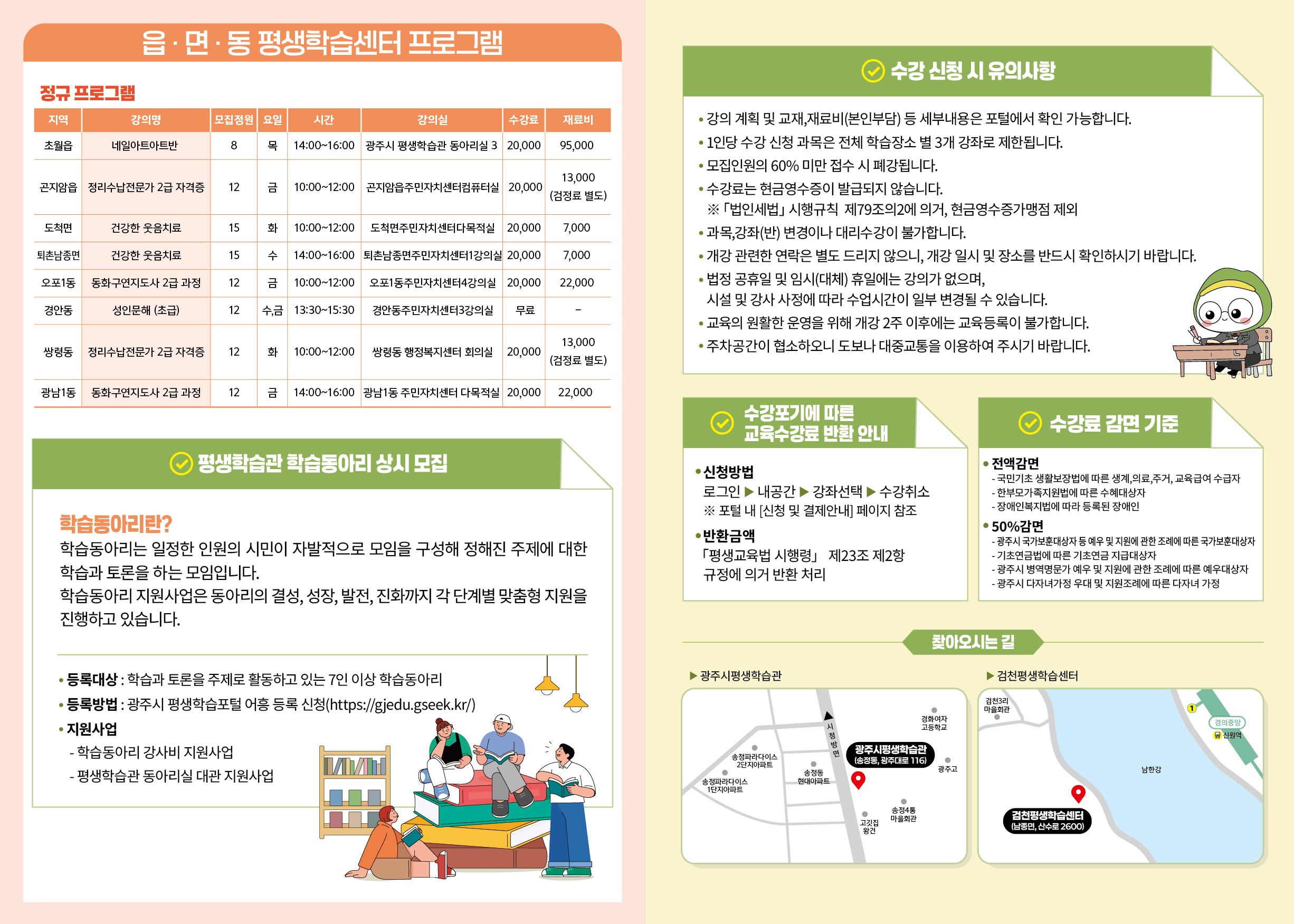 광주시 평생학습관 & 검천 평생학습센터 & 읍면동 평생학습센터 2026년 1기 정규 강좌 수강생 모집 안내